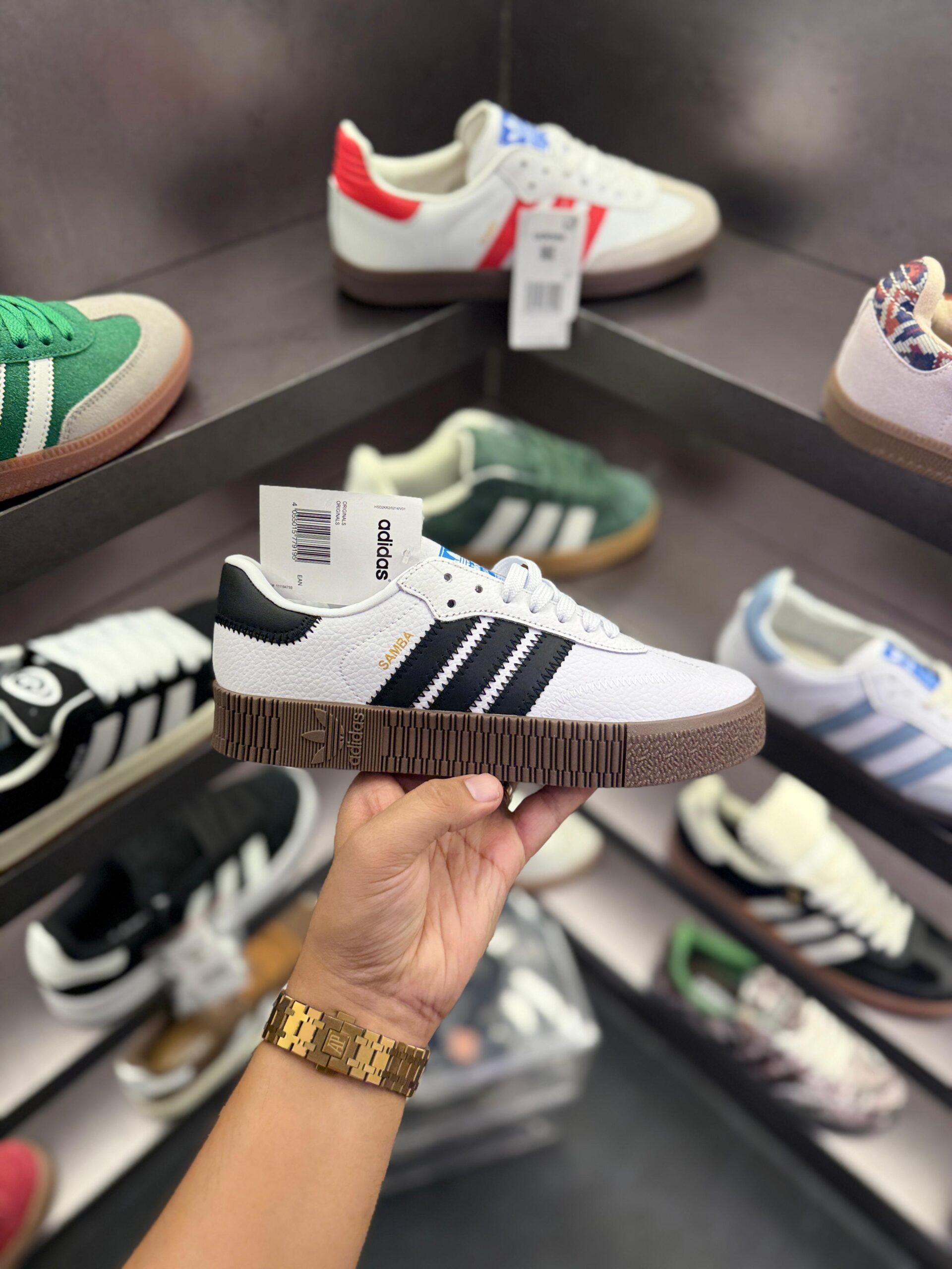 Introducing the Adidas Originals Sambarose White, a perfect blend of heritage and contemporary style. Rooted in the iconic Samba lineage, these sneakers are designed for those who appreciate both sport and fashion. The crisp white upper is complemented by a unique platform sole, ensuring that you stand out in the crowd while enjoying superior comfort with every step. The classic three stripes and subtle branding pay homage to Adidasโ rich history while maintaining a fresh and modern aesthetic, making them a versatile addition to any wardrobe.