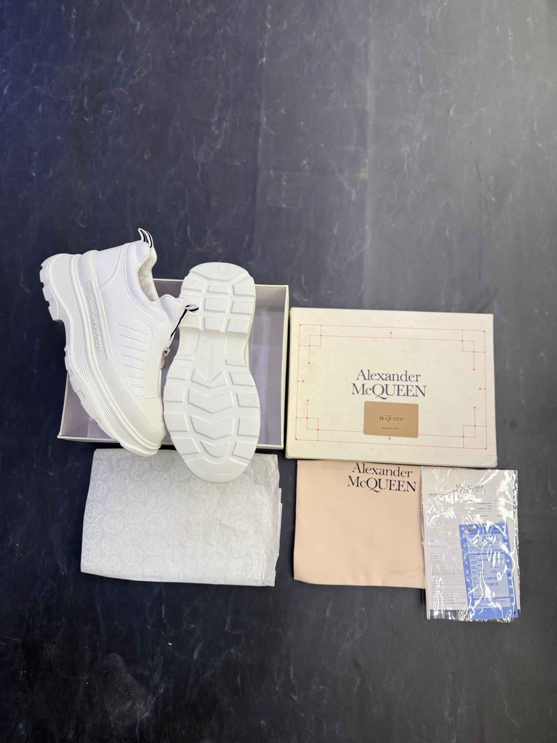 Introducing the ALEXANDER MCQUEEN LONDON TRIPLE – a bold statement sneaker that merges cutting-edge design with unparalleled comfort. Crafted from premium materials, this stylish footwear showcases the iconic chunky silhouette that is emblematic of the McQueen brand. Perfect for fashion-forward individuals, the Triple features elaborately layered panels and a distinct oversized sole that elevates any outfit. Whether you’re strutting down the city streets or enjoying a casual day out, these sneakers encapsulate a unique blend of luxury and streetwear aesthetics.