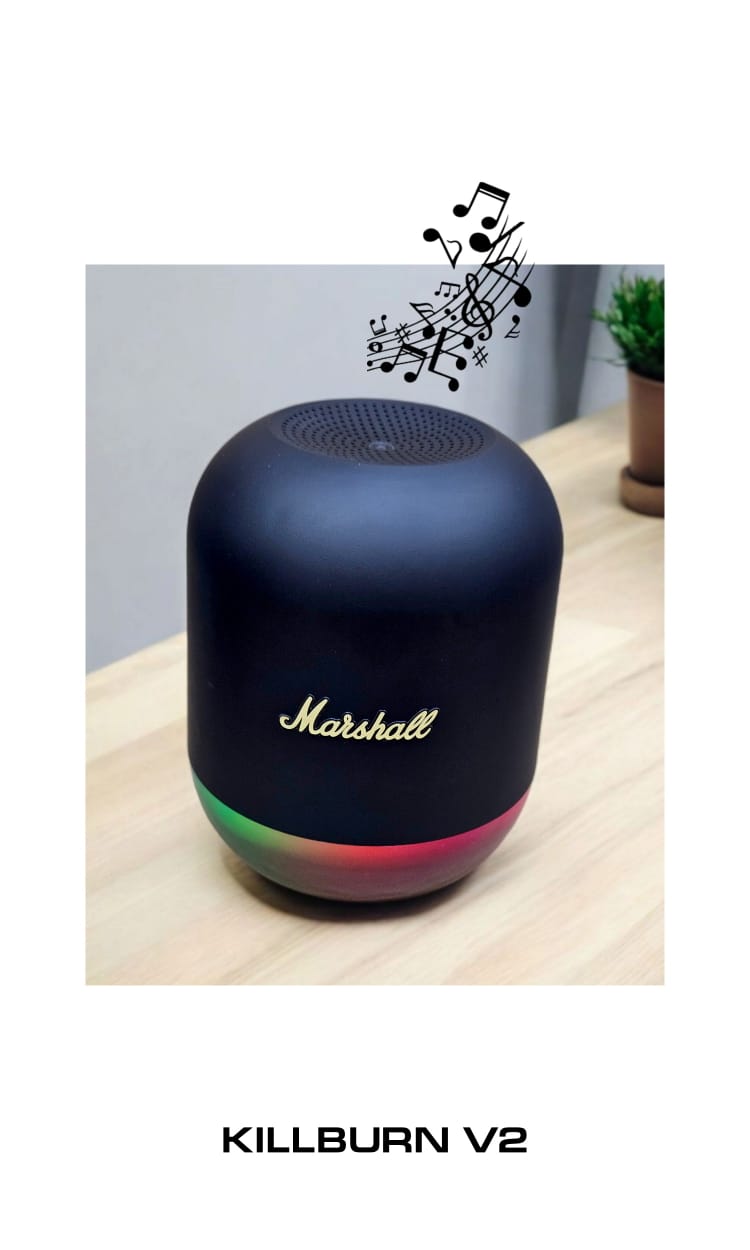 Unleash the power of music with the Marshall Killburn V2, a compact yet robust portable speaker that delivers an impressive sound experience wherever you go. Its iconic design, featuring the classic Marshall lettering and vintage-style grille, embodies the spirit of rock ‘n’ roll, while advanced audio technology ensures rich bass and crisp treble. With up to 20 hours of playtime on a single charge, you can enjoy your favorite playlists from morning until night. Whether you’re at the park, on a road trip, or lounging at home, the Killburn V2 is your perfect audio companion.